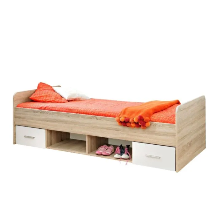 Otroška soba ZARJA je narejena iz kvalitetnega iverala. Dovršen dizajn je plod poljskih dizajnerjev. Soba vključuje: omaro, posteljo, nočno omarico, visečo omaro in knjižni regal. Soba je zelo praktična in uporabna.