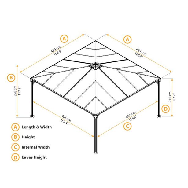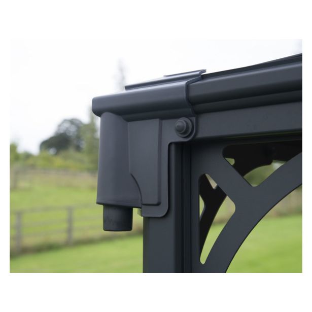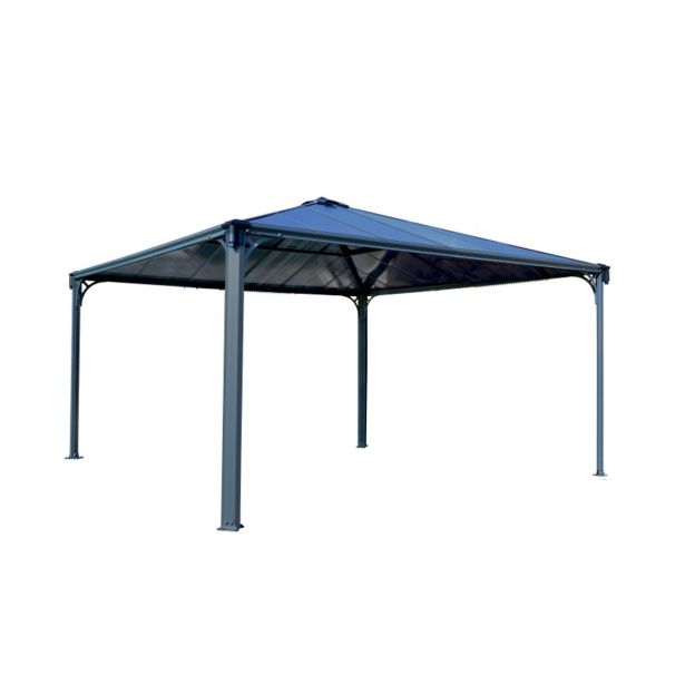 Vrtni paviljon Palram Palermo 4300 v sivi barvi ima estetski videz, odporen proti koroziji.