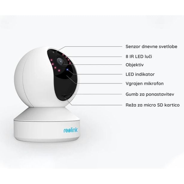 E330 je pametna WiFi IP kamera iz družine Reolink. Ponaša se z izjemno 4MP Super HD ločljivostjo snemanja podnevi in ponoči, 355° vrtenjem in 50° nagibanjem, vgrajenim mikrofonom in zvočnikom, med drugim pa ima tudi izjemne dodatne lastnosti:
