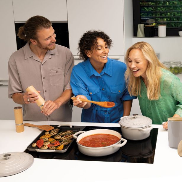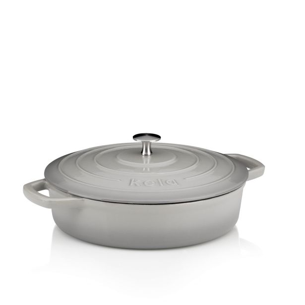 Litoželezna okrogla pekač s pokrovom Calido je izjemen dodatek za vsako kuhinjo, kot nalašč za pripravo najrazličnejših jedi. Ta svetlo siva ponev s premerom 28 cm in višino 7 cm ponuja prostornino 3,2 litra, zato je idealna za peko, kuhanje in dušenje. Podnožje, ki je kompatibilno z indukcijo, zagotavlja optimalno porazdelitev toplote na vseh vrstah štedilnikov, vključno z indukcijskimi, plinskimi in električnimi. Ta funkcija ne le pospeši proces kuhanja, ampak tudi zagotavlja enakomerno porazdelitev toplote, kar ima za posledico popolno pečene jedi brez suhih ali prekuhanih delov. Veliki ročaji na ponvi omogočajo enostavno rokovanje, kar zagotavlja varnost pri premikanju iz pečice ali na mizo. Pokrov pekača prispeva k zadrževanju vlage in arome. Ne glede na to, ali pripravljate sočne pečenke, aromatične enolončnice ali okusne zelenjavne jedi, ta pekač iz litega železa nudi vzdržljivost in dolgo življenjsko dobo, zaradi česar je odlična izbira za vsako kuhinjo.