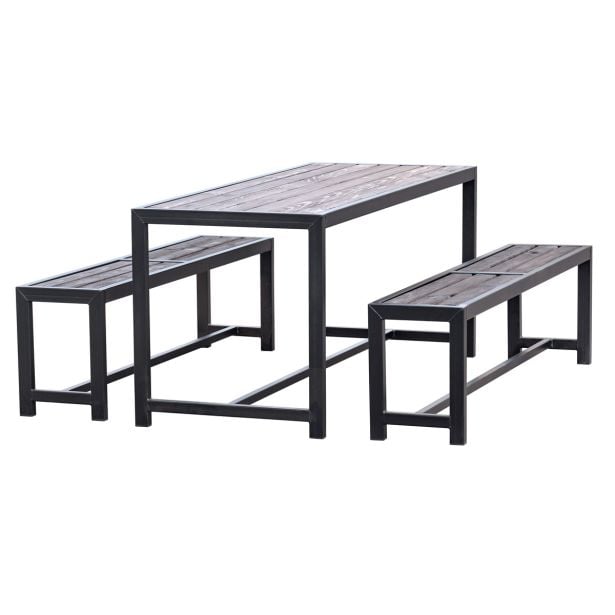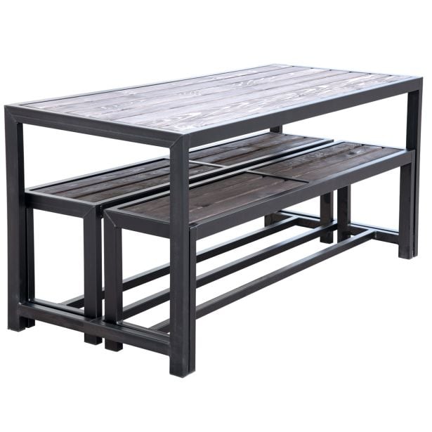 Že sestavljena piknik miza s kovinskim ogrodjem iz lepljenega
