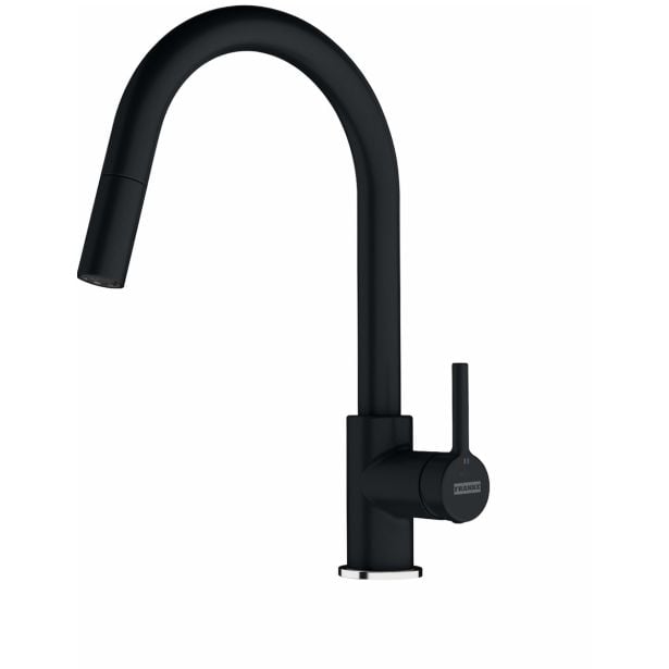 Kuhinjska armatura LINAZ izvlečnim izlivomBarva: onyxRadij vrtenja: 150 stopinjUpravljanjena desni straniPretok vode: 11 L/min (3 bar) Povezovalne cevi: 450 mm