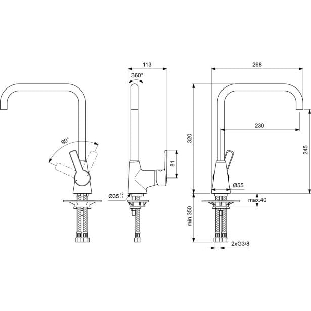Klasična kuhinjska pipa Ideal standard s visoko cejo ima vintage retro videz.