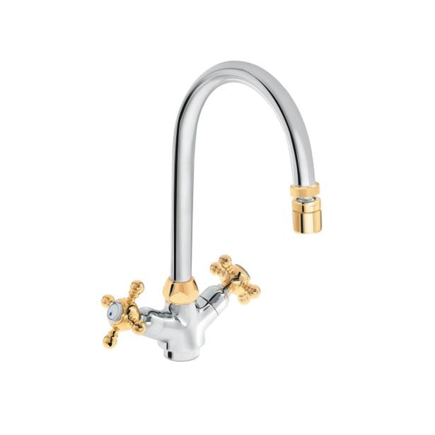 Armatura Stil za kuhinjo, keramično tesnenje – “J” izliv, krom – zlato