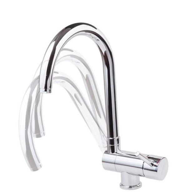 Kuhinjska armatura Fresh – dovršen design in preigravanje okroglih linij, katero je možno namestiti v vsako sodobno kuhinjo. Posebnost te armature je, da se izliv preklopi, če imate v bližini korita okno.