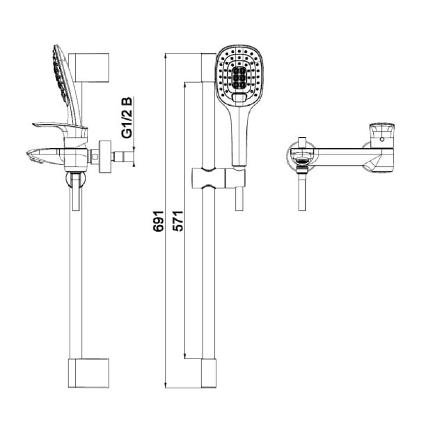 Pipa za kad Unitas Elite E30 v kompletu s prho, gibljivo cevjo in konzolo.