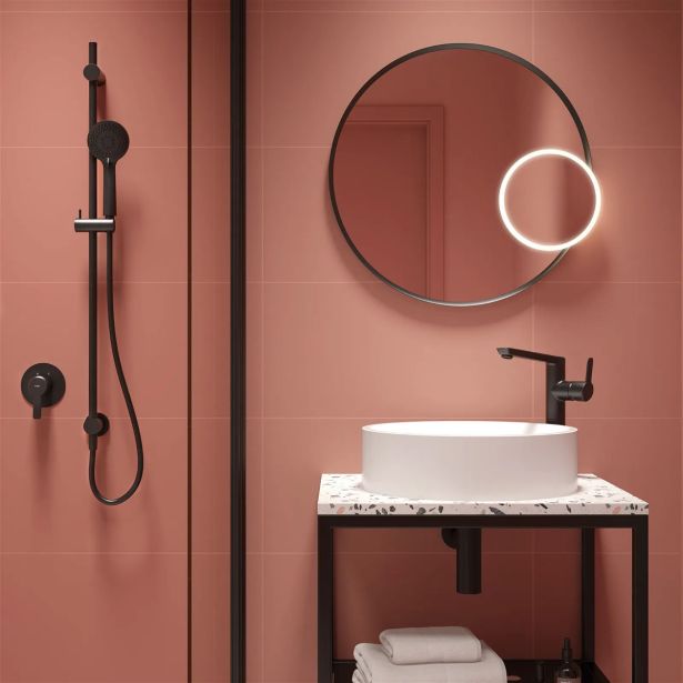 Pipa umivalnika z dvignjenim telesom iz kolekcije Arnika, ki jo odlikujejo prijetne, harmonične oblike in zaobljene oblike, je pipa s klasično in elegantno črno mat površino okovja Deante Nero, ki je rezultat inovativne tehnologije. Njegove posebne lastnosti pomenijo, da na pipi ne puščate prstnih odtisov. Površinska struktura je trpežna in enostavna za čiščenje. Če želite odstraniti umazanijo, samo obrišete z mehko krpo. Še več, zaradi globoke črne barve so druge barve svetlejše, polnejše in izrazitejše.