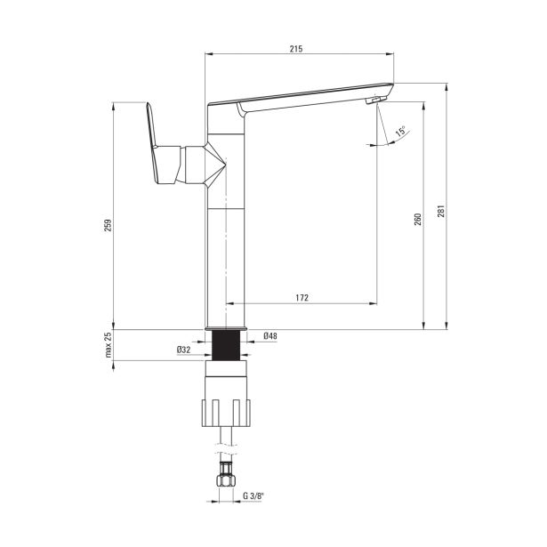 – Ročica ob strani omogoča enostavno vzdrževanje čistoče armature