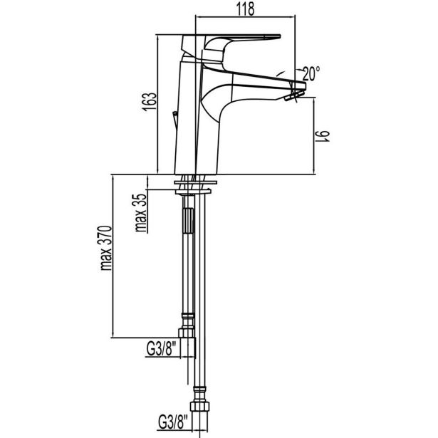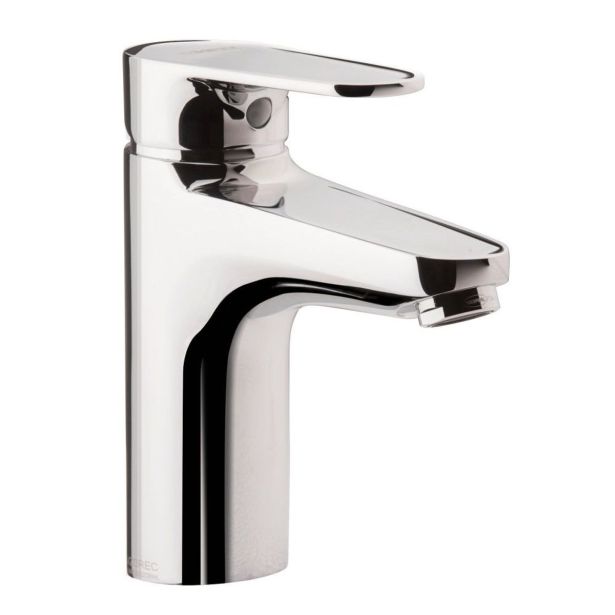 Povišana armatura za umivalnik z eco kartušo, srebrne barve.