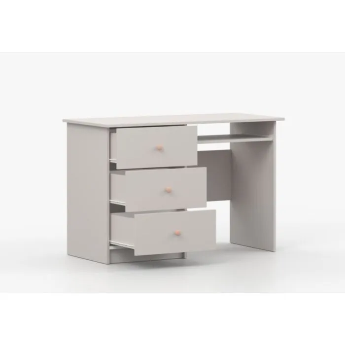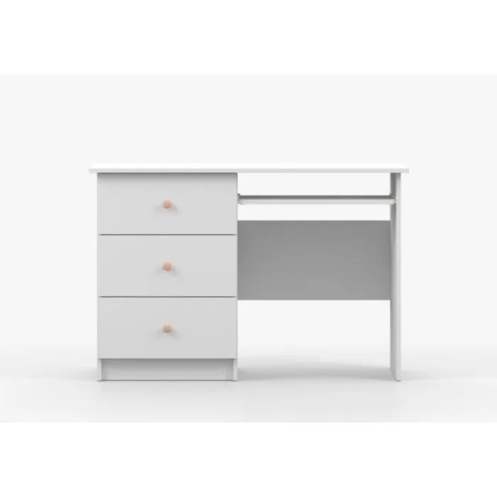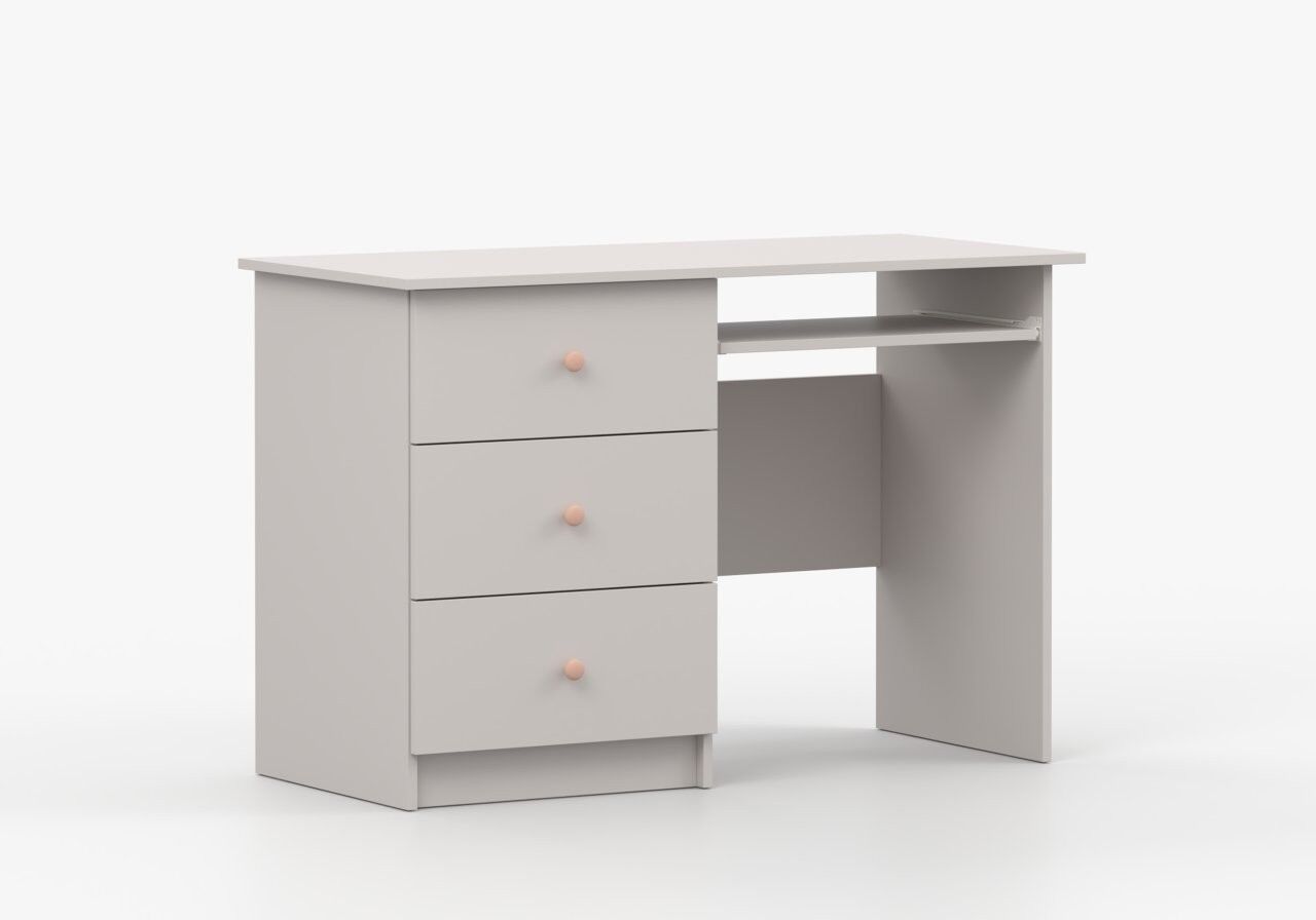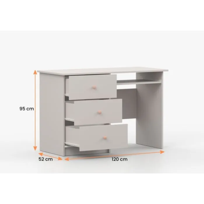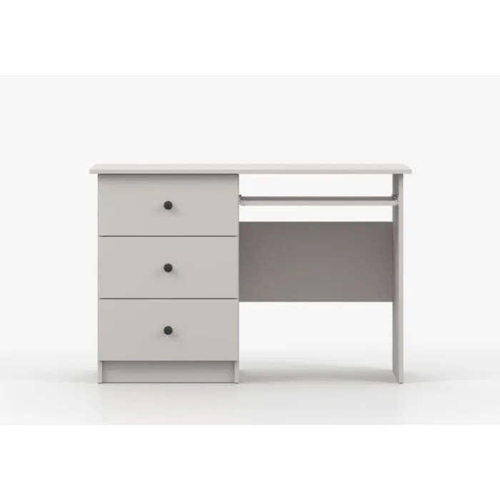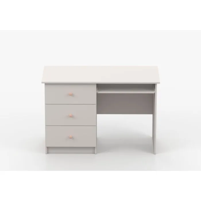 Pisalna miza SNEŽINKA združuje sodoben slog s funkcionalnostjo. Ima tri praktične predale za shranjevanje. Svetla barva z ročaji doda čar in daje ceolotni notranjosti edinstven videz. Na voljo je v dveh barvah: bela in kašmir. Za ročaje ima kakovostne gumbe, katerim lahko določate barvo antracit ali bež. Narejena je iz visokokakovostne laminirane plošče debeline 16 mm.