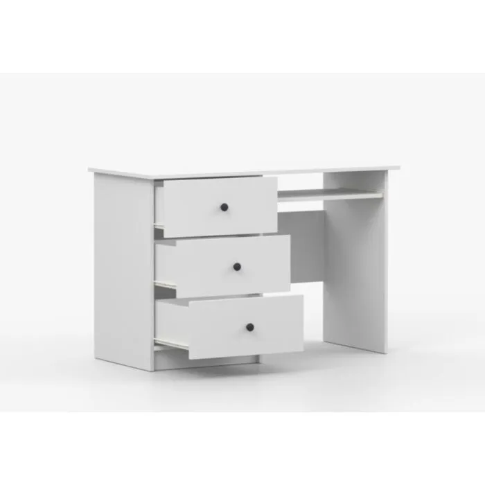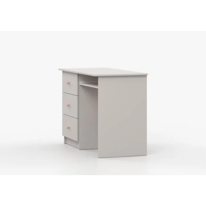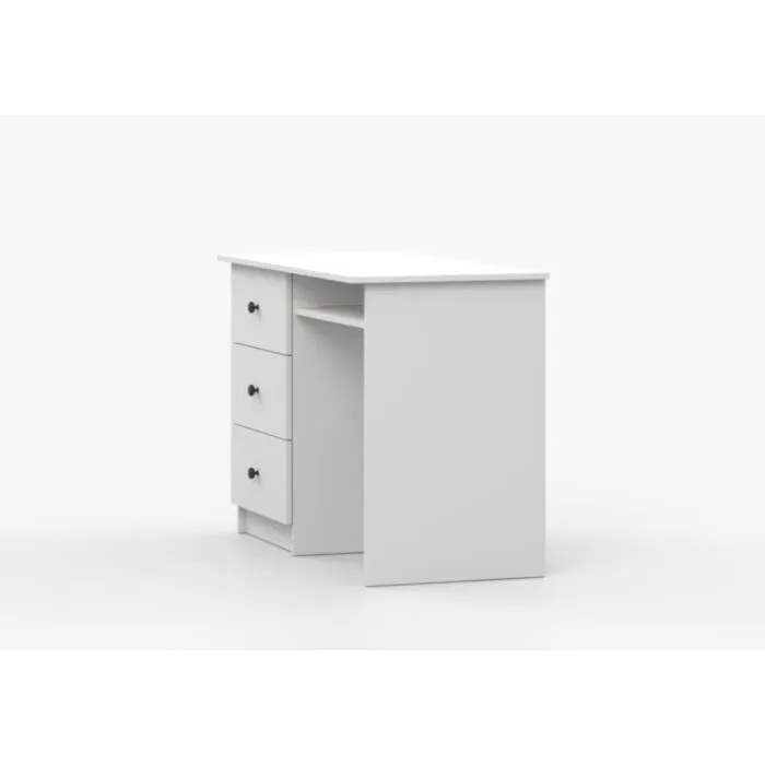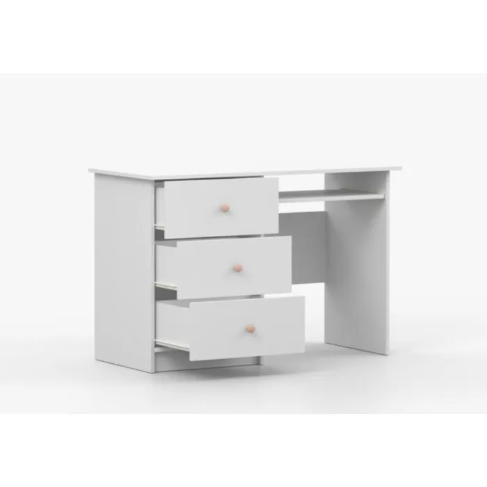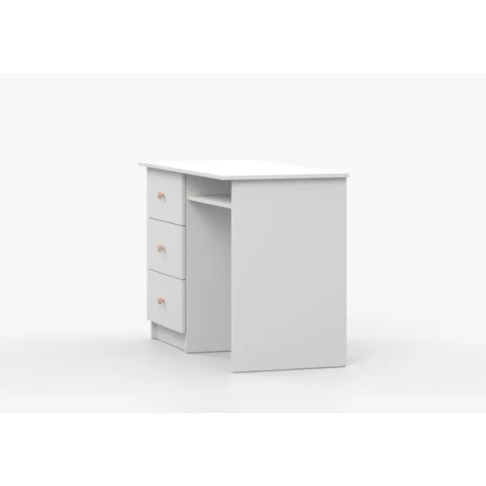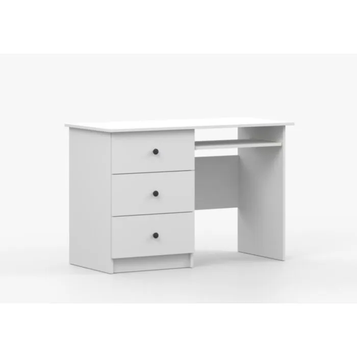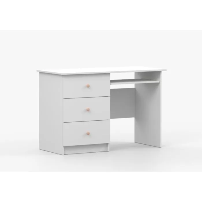Pisalna miza SNEŽINKA združuje sodoben slog s funkcionalnostjo. Ima tri praktične predale za shranjevanje. Svetla barva z ročaji doda čar in daje ceolotni notranjosti edinstven videz. Na voljo je v dveh barvah: bela in kašmir. Za ročaje ima kakovostne gumbe, katerim lahko določate barvo antracit ali bež. Narejena je iz visokokakovostne laminirane plošče debeline 16 mm.