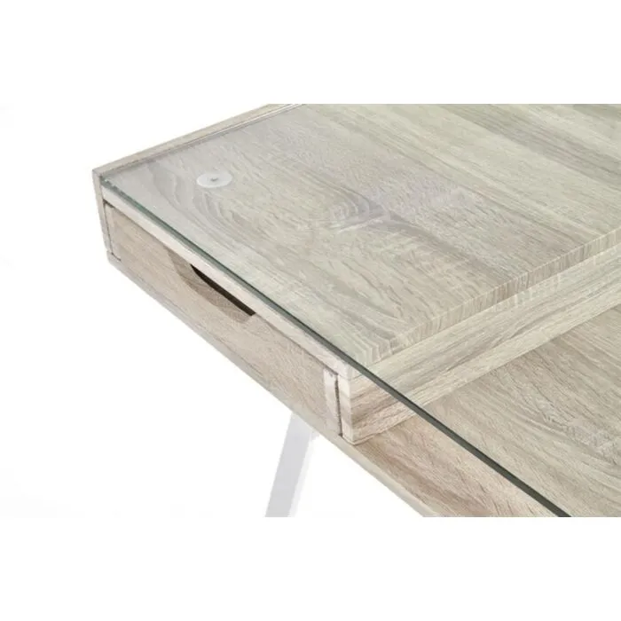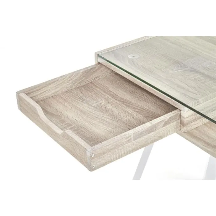 Pisalna miza ZOJA je primerna za pisarniške sobe ali kot dodatek v vsak prostor. Narejena je iz kovine in MDF. Delovna površina pa je steklena. Vgrajena ima dva predala. Dobavljiva je v barvi kot je na sliki.