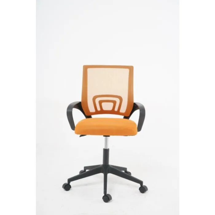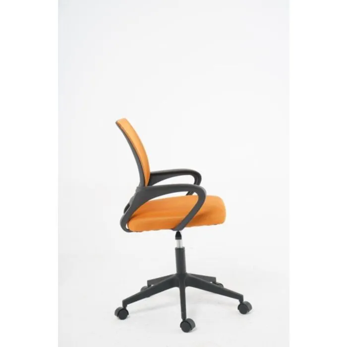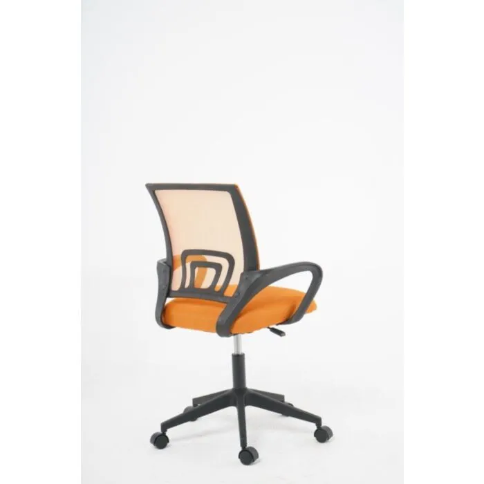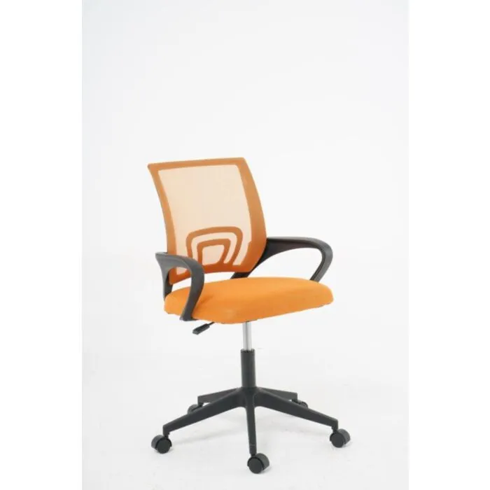 Pisarniški stol DISCO oranžna je vrtljiv stol, ki je nastavljiv po višini. Zagotavlja popolnoma zanesljivo uporabo ter vzdržljivost. Čvrsta podlaga in zračno mrežasto hrbtišče vam nudita udobje med celotnim delovnim časom. Naslon za hrbet je narejen iz mreže, podnožje je plastično in vsebuje gumijaste kolesce, kar preprečuje praske po tleh.