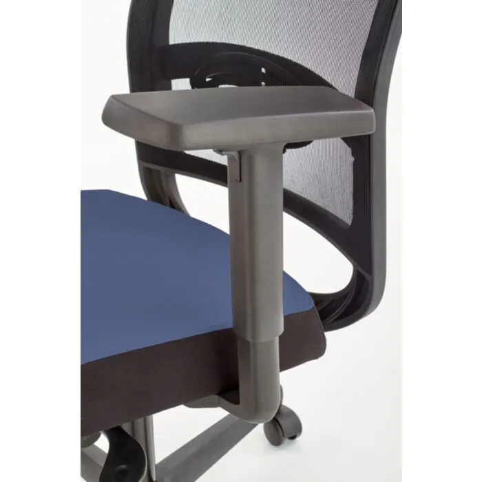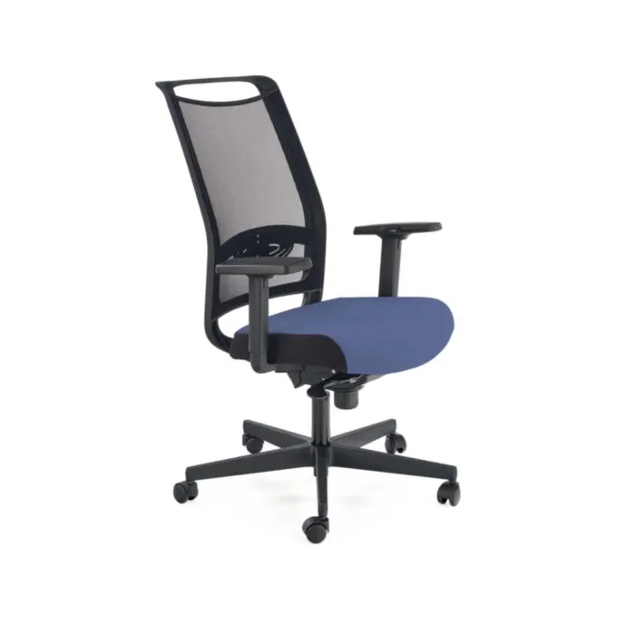 Moderno zasnovani pisarniški stol ETTA je nastavljiv po višini, ima sinkro mehanizem, nastavljive rokonaslone v treh pozicijah in nastavitev v ledvenem delu