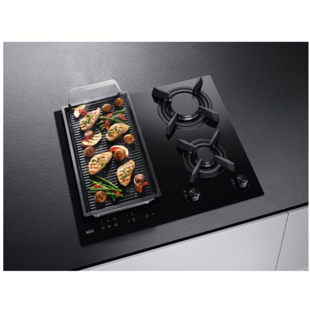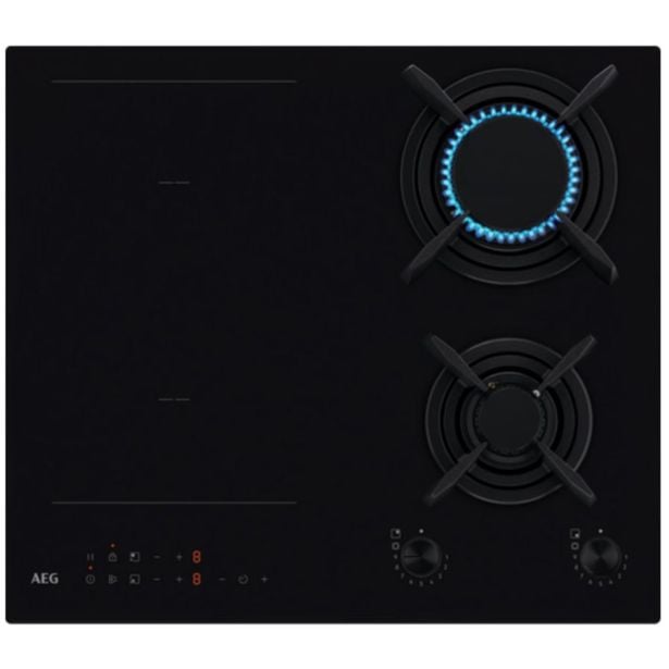 AEG praktična kuhalna plošča nudi dva plinska gorilnika in dva indukcijska kuhalna območja. Navdušuje s preprostim upravljanjem z vrtljivimi gumbi in elektronskimi tipkami, z rešetkami iz litega železa, Booster funkcijo ter funkcijo združevanja dveh kuhalnih območij.