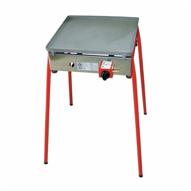 Za 48 oseb površina za pečenje (d/š): 40/40 cm litoželezna gladka plošča z nogami S gorilnik moč: 5 kW ohišje iz nerjavnega jekla.