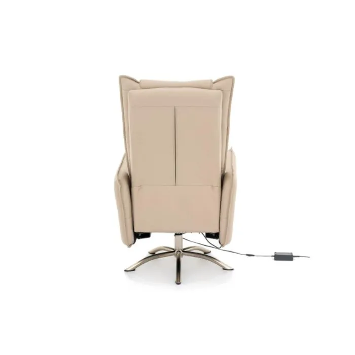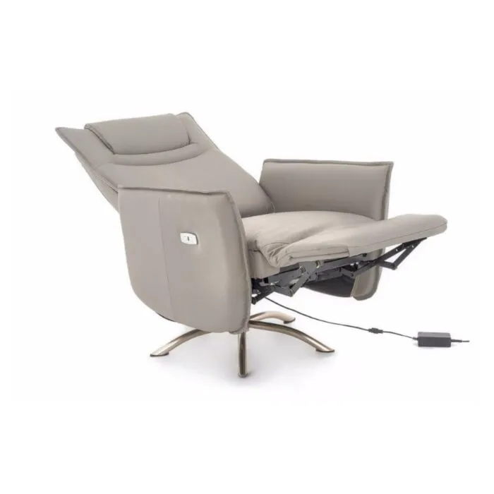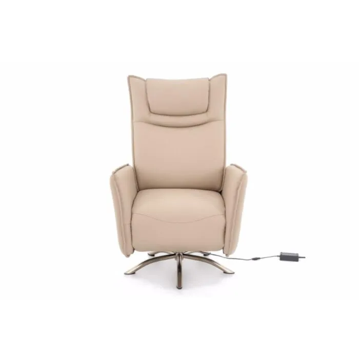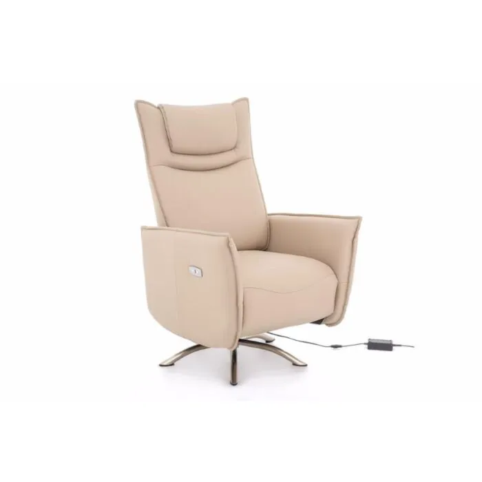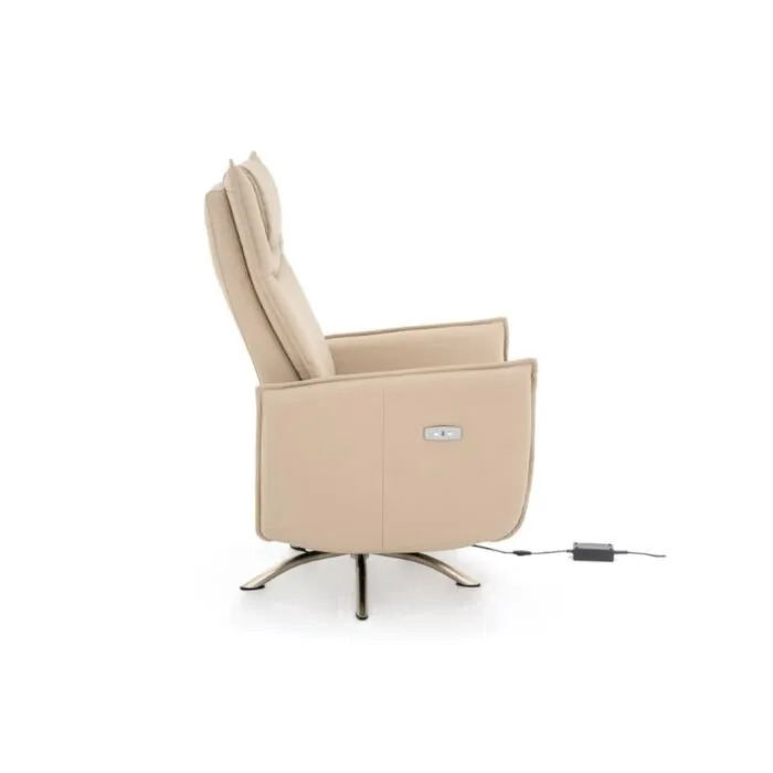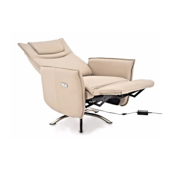 Naslon za noge je raztegljiv in poskrbi za še večje udobje in sprostitev v polležečem položaju. Spremenite lahko tudi nagib hrbtišča. Električni počivalnik ima USB vtičnico. Vrtljiv je za 360 stopinj. Dobavljiv je v sivi in bež barvi.