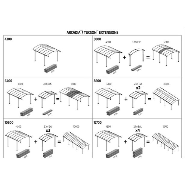 Kovinski nadstrešek Palram Arcadia podaljšek 2100mm je izdelan iz predmetov, ki so odporni na korozijo.