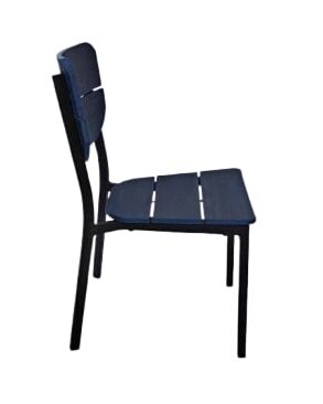 Opis: Vrtni stol Polo BRN je zasnovan za profesionalno uporabo na gostinskih in hotelskih terasah. Aluminijasto ogrodje, zaščiteno z obstojno antracit barvo, zagotavlja visoko odpornost proti vremenskim vplivom in koroziji. Sedišče in naslon sta izdelana iz plastičnih letvic v imitaciji staranega lesa v odtenku Ocean Blue Rustic, kar zagotavlja dolgo življenjsko dobo tudi v zahtevnih zunanjih pogojih. Stol je nakladalen, kar omogoča učinkovito shranjevanje in prihranek prostora.