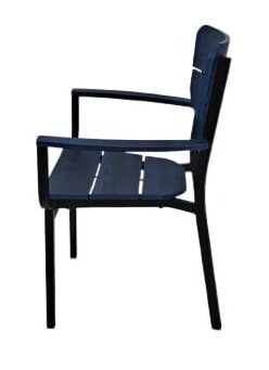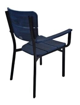 Opis: Vrtni stol Polo ZRN je zasnovan za profesionalno uporabo na gostinskih in hotelskih terasah. Z aluminijastim ogrodjem, zaščitenim z obstojno antracit barvo, zagotavlja odpornost proti vremenskim vplivom in koroziji. Sedišče in naslon sta izdelana iz plastičnih letvic v imitaciji staranega lesa v odtenku Ocean Blue Rustic, ki omogočajo dolgo življenjsko dobo tudi v zahtevnih zunanjih pogojih. Stol je nakladalen za enostavno shranjevanje in premikanje.