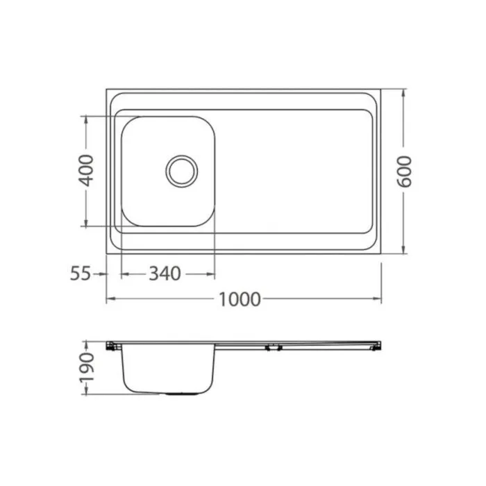 Inox pomivalno korito CP70 je nasadno. Korito ima odlagalno površino. Postavitev korita je univerzalna (levo ali desno). Minimalna širina omarice je 50 cm. Velikost posode je 34 x 40 x 19.