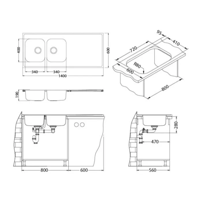 Inox pomivalno korito CP 110 je nasadno. Korito ima dve posode in odlagalno površino. Postavitev korita je univerzalna (levo ali desno). Minimalna širina omarice je 80 cm. Velikost posode je 34 x 40 x 19.