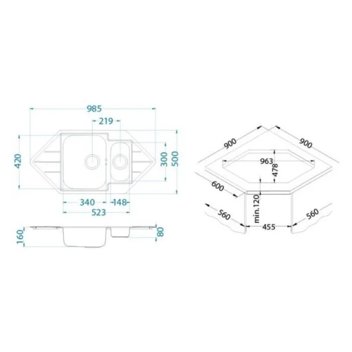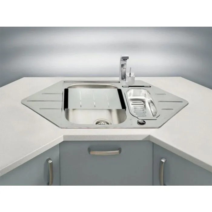 Inox pomivalno korito LN 40 je vgradno. Korito je kotno in ima dve posodi. Minimalna širina omarice je 60 cm. Korito vsebuje sifon.