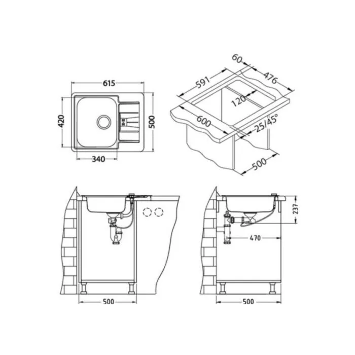 Inox pomivalno korito LN 60 je vgradno. Korito ima eno posodo, ter odlagalno površino. Postavitev korita je univerzalna (levo ali desno). Minimalna širina omarice je 50 cm. Korito vsebuje sifon.