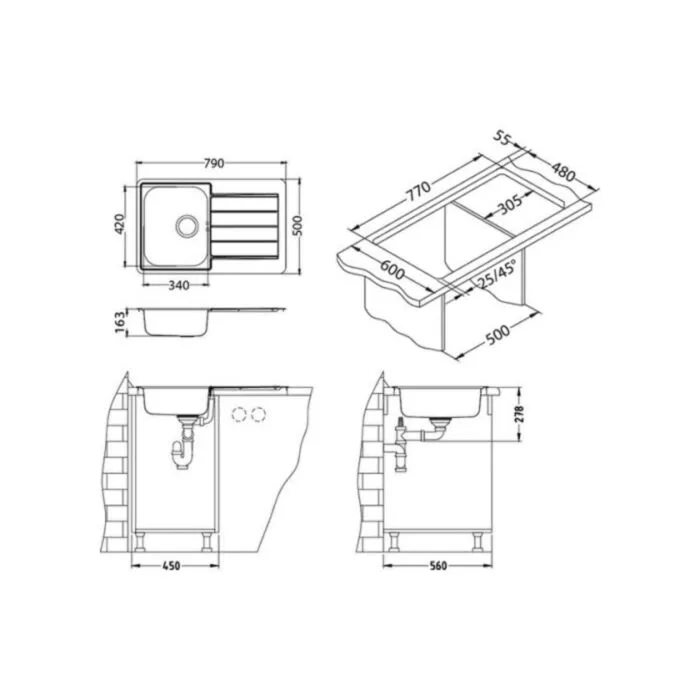 Inox pomivalno korito LN 80 je vgradno. Korito ima odlagalno površino. Minimalna širina omarice je 45 cm. Korito vsebuje sifon.