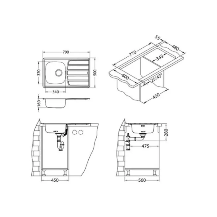Inox pomivalno korito ZM 20 je vgradno. Korito ima odlagalno površino. Postavitev korita je univerzalna (levo ali desno). Minimalna širina omarice je 45 cm.