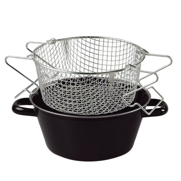 Posoda za cvrtje 24 cm črna s košarico za cvrtje krompirja in uporabna tudi brez košarice za cvrtje zelenjave, zrezkov ali krofov. Posebna konusna oblika omogoča manjšo porabo olja. Črna barva izboljša izkoristek pečenja, predvsem pri višjih temperaturah. Emajlirana posoda predstavlja zdravo kuhanje (cvrtje, pečenje) in izpolnjuje vse sodobne zahteve, kot so varčevanje z energijo, skrb za ekologijo. Emajl pomeni zdrav način kuhanja, odporen je proti vrezninam in praskam, ne vsebuje niklja in druge škodljive snovi, ne vpliva na okus in zavira razvoj bakterij. Za vse vrste kuhalnih plošč: indukcijo, steklo-keramično ploščo, elektriko ali plin. Posoda je odporna na visoke temperature in primerna za pranje v pomivalnem stroju.