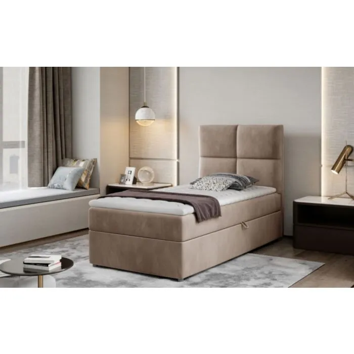 Oblazinjena postelj ARES  modernega dizajna vam bo popestrila vaš prostor. Odličen mehanizem vam bo omogočal, da boste lahko posteljnino pospravili pod posteljo. Vsebuje dvižno letveno dno in predal.  Dobavljiva v več barvah blaga in dimenzijah.