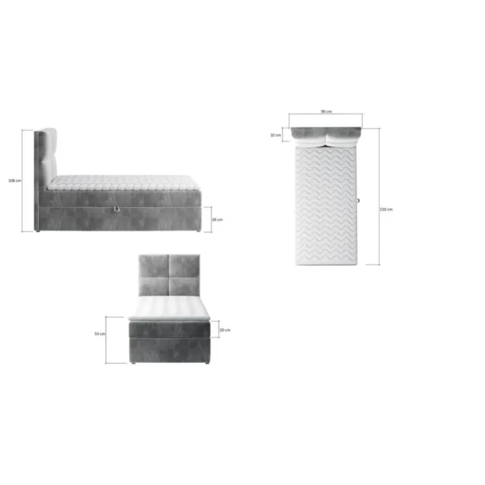 – 90 x 200 cm (Š: 90 x D: 210 x V: 108/53cm)
