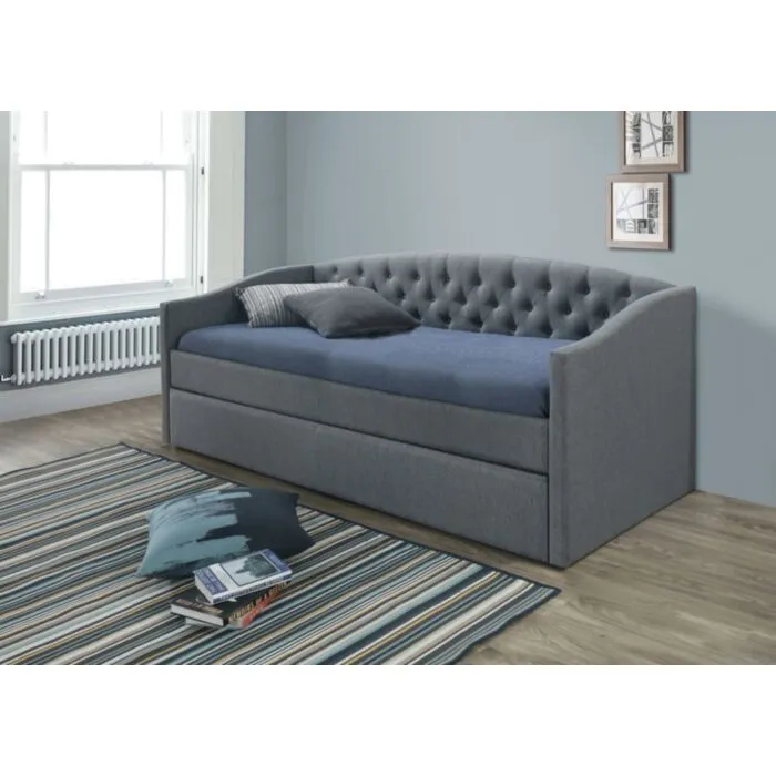 Moderna postelja CIARA vam bo zagotovila miren spanec. Njena prednost je dodatno ležišče (90 x 195 x 18). Je kvalitetno narejena, oblazinjena z sivim blagom. V ceno je vključen POSTELJNI POD.
