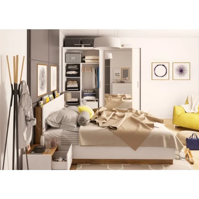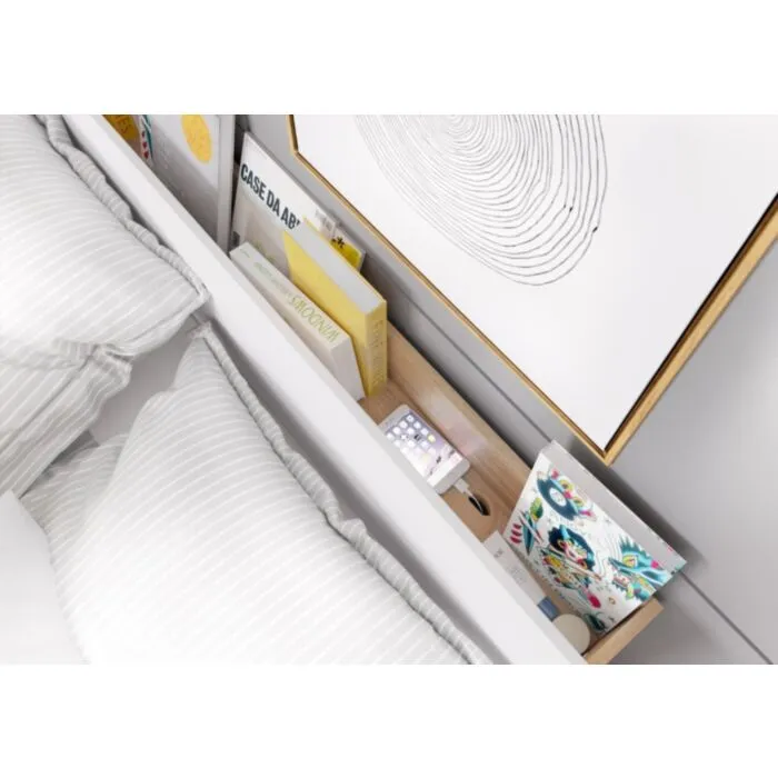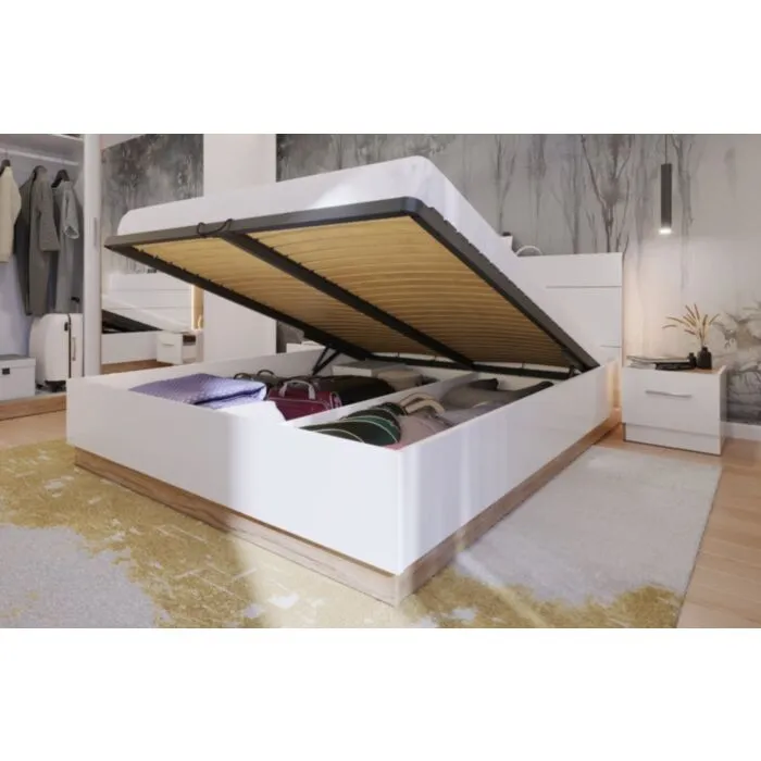 Postelja DANI je modernega dizajna in brezhibnega izgleda. Postelja je unikatna ker ima pri vzglavju praktično polico na katero lahko pospravite svoje knjige, očala in druge predmete. Polica v vzglavju je odlična rešitev, ki bo delovala predvsem v majhnih spalnicah, saj omogoča odstop od nočnih omar in tako prihrani veliko prostora. Postelja ima vgrajeno LED osvetlitev. Prednost postelje je da ima veliko prostora pod ležiščem za spravljenje posteljnine in ostalih stvari.