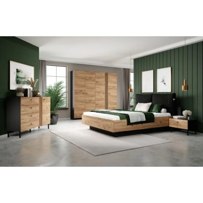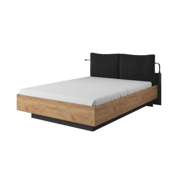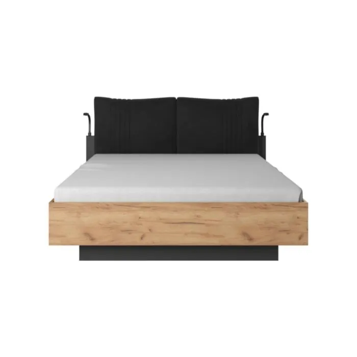 Postelja GALIJA vas bo očarala s svojimi toplimi barvami skandinavskega hrasta v kombinaciji s kontrastno antracit barvo, ki bodo vašo spalnico naredile prostor blizu narave. Postelja ima oblazinjeno vzglavje ter dvižno letveno dno s predalom za shranjevanje. Narejena iz kvalitetne laminirane plošče.