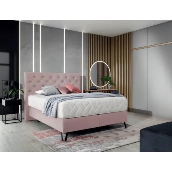 Postelja KORI je narejena iz robustnega okvirja s črnimi kovinskimi nogami višine 15cm. Prešito zglavje je polnjeno s peno, ki zagotavlja mehko oporo za glavo. V kompletu s posteljo dobite udobno vzmetnico z žepkastimi vzmetmi. Vzmetnica ima snemljivo prevleko.