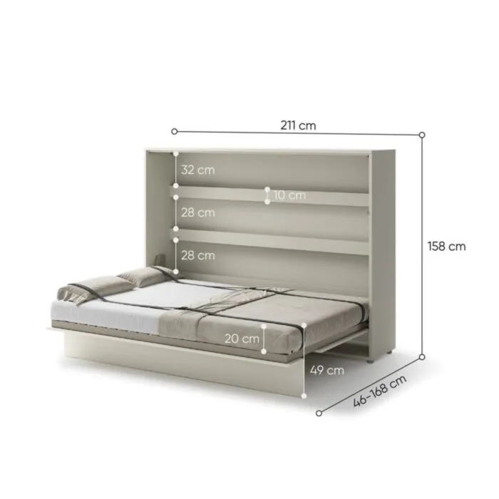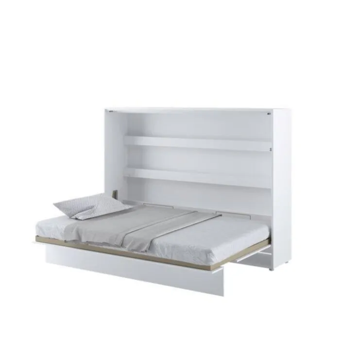 Vodoravna stenska postelja ZVONČEK je primerna za vzmetnico 140 cm širine. Opremljena je z dodatnimi notranjimi policami. Primerna je tudi za majhno stanovanje, sobo za goste, garsonjero itd. Stenska postelja je enako udobna kot klasična postelja – Ima letveni pod ter trpežen kovinski okvir in stabilizator vzmetnice, ki zagotavlja udoben počitek. Pnevmatsko dvigalo preprečuje nenadno odpiranje postelje. Postelja se odpre s klikom na sprednji strani in se jo nežno povleče dol. Ker ima postelja soft close je zapiranje postelje skoraj neslišno. Za shranjevanje posteljnine ne potrebujete dodatnega prostora, saj je opremljena s praktičnimi posteljnimi trakovi, zahvaljujoč katerim odeja in vzglavniki izginejo skupaj s posteljo. Nosilni mehanizem in posteljni okvir sta izdelana iz kovine, kar neposredno vpliva na njihovo visoko vzdržljivost.