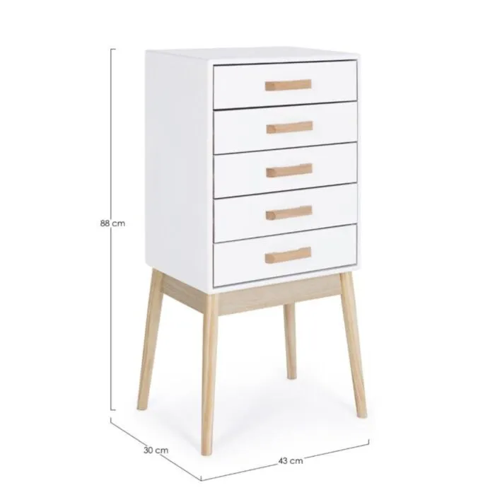 Predalnik 5C ORDINARY bela je edinstven in prefinjen kos pohištva, Izdelan je iz trpežnega borovega lesa, kar zagotavlja stabilnost in naraven videz.