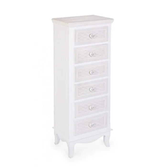 Predalnik 6C CHARLENE je narejena iz MDF-ja in ima gumbe iz polismole.