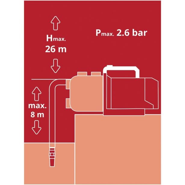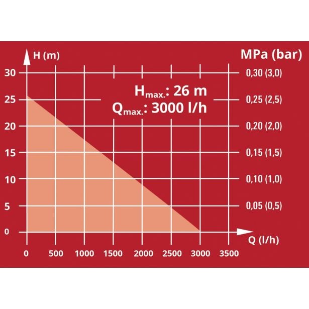 AQUINNA 36/30 je pretočna črpalka z njo lahko uporabljate deževnico ali vodo iz vodnjaka in cistern. Črpalka ima dovodno zmogljivost 3000 l / h in največjo višino 26 m. Največja sesalna moč 8 m, sesalni priključek 42 mm, tlačni priključek 33,3 mm.