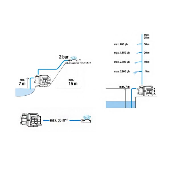 Enostavno črpanje vode iz vodnjaka, cisterne ali zbiralnika deževnice v zalivalnik in pršilnik.