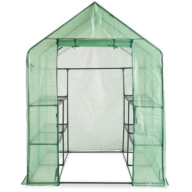 Za zaščito vaših vrtnin. VonHaus rastlinjak je idealen za zaščito vrtnin pred vetrom in zmrzaljo. Osmice polic podpirajo težo do 8kg, vse police pa so odstranljive. Vremensko odporen z barvanimi kovinskimi cevmi in ojačano folijo. Preprosta montaža brez orodja