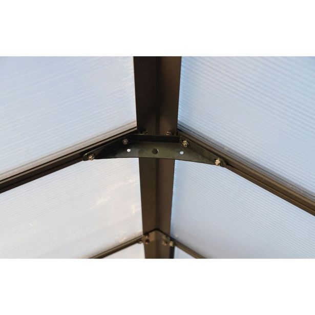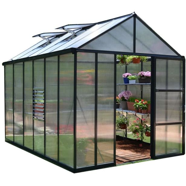 Palram rastlinjak Glory 8×12, ima debel aluminjasti okvir, ki je odporen proti toči, udarcem in rji.