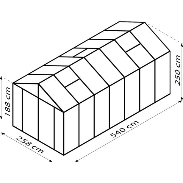 udobno vrtnarjenje: 1,88 m visoke stranice, 2,5 m visoko streho in