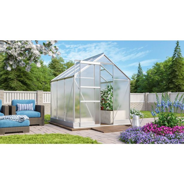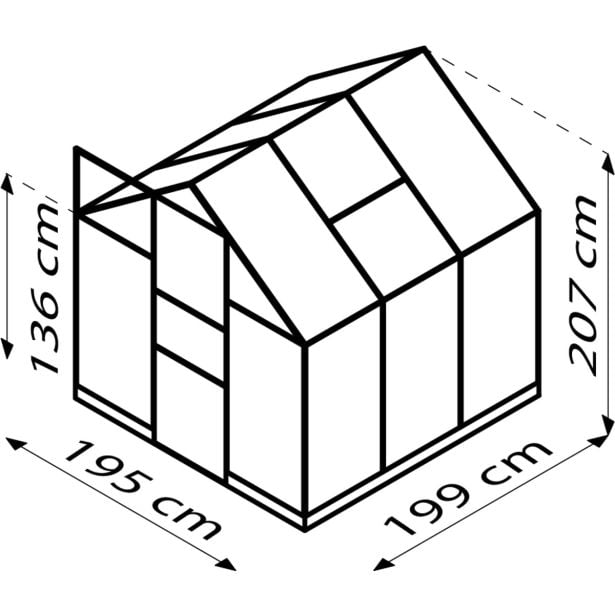 Polikarbonatni rastlinjak Vitavia Apollo 3800 ponuja vse, kar začetnik potrebuje. V paketu dobite rastlinjak dimenzije (DxŠXV) 198,8 x 195 x 207.4 cm, izdelan iz dvostenske plošče (HKP) debeline 4 mm ter: jekleni eloksiran aluminij okvir, strešno okno za prezračevanje in žleb za zbiranje deževnice.