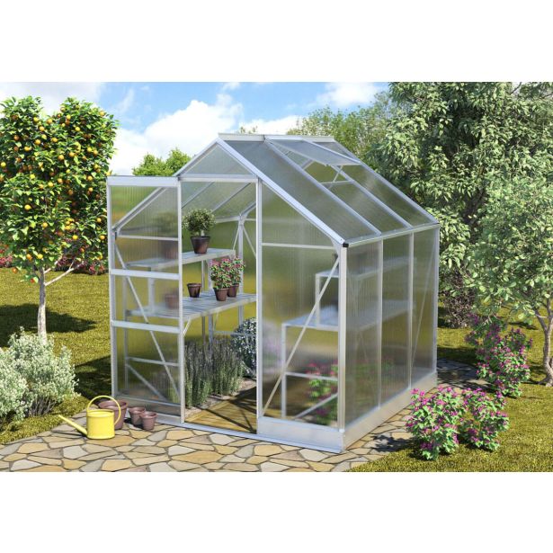 Polikarbonatni rastlinjak Vitavia Apollo 3800 ponuja vse, kar začetnik potrebuje za vrtnarjenje v rastlinjaku. V paketu dobite rastlijak dimenzije (DxŠXV) 198,8 x 195 x 207.4 cm iz votlih plošč 6 mm ter: jekleni eloksiran aluminij okvir, strešno okno za prezračevanje in žleb za zbiranje deževnice.