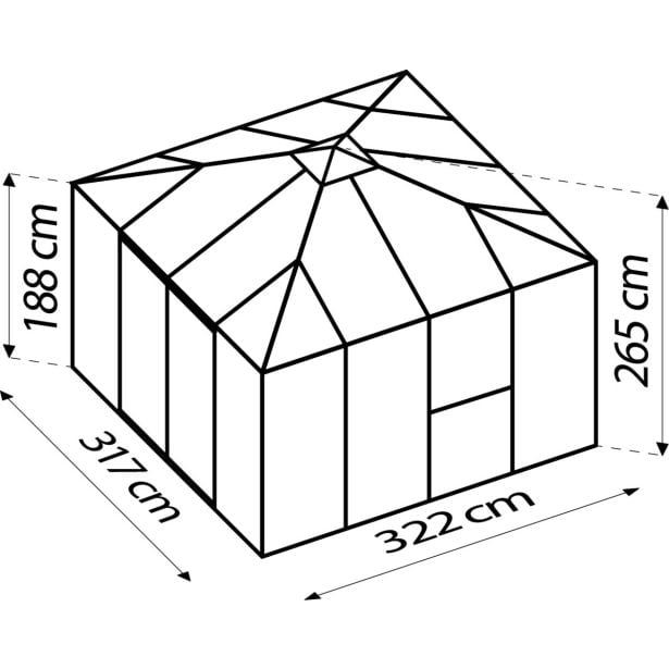 Rastlinjak Fortuna se zaradi svoje posebne oblike, kot je streha paviljona, popolnoma prilega vašemu vrtnemu raju. Zahtevni vrtnarji in rastline imajo koristi od visokokakovostne opreme, na primer z dobro izolativno streho iz votlih stenskih plošč, 3 stranskimi okni, ki zagotavljajo odlično prezračevanje, in visokimi stranskimi stenami, ki zagotavljajo veliko prostora za rast in cvetenje. Na 10,2 m2 tlorisne površine bodo zaradi 1,88 m visokih stranic in 2,65 m visokega slemena rastline in hobi vrtnarji našli dovolj prostora za razvoj. Široka dvokrilna vrata, ki jih je mogoče na široko odpreti, poudarjajo vtis prostornosti. Obe vratni krili je mogoče zakleniti, ko sta odprti: to zagotavlja prost vstop in izstop, tudi če imate v rokah velike predmete. Dvojni okvirni profili ob straneh stabilno in brez nadležnih pripomočkov, kot so vzmetne sponke, po vsej dolžini objamejo velika stekla iz kristalno čistega varnostnega stekla (ESG). Poleg tega Fortuna navdušuje s svojim domačim značajem: stranice iz kristalno čistega varnostnega stekla (ESG) omogočajo pogled na vrt in rastlinjak. Tri stranska okna ter vratna kljuka iz nerjavečega jekla in visokokakovostna cilindrična ključavnica z možnostjo zaklepanja dajejo zeleni oazi domač pridih. Nadaljnje podrobnosti razkrivajo, da je bil mali raj do potankosti premišljen glede uporabe: žlebovi in ??odtočne cevi omogočajo zbiranje dragocenosti
