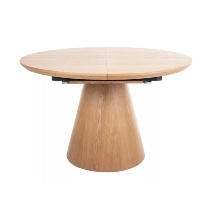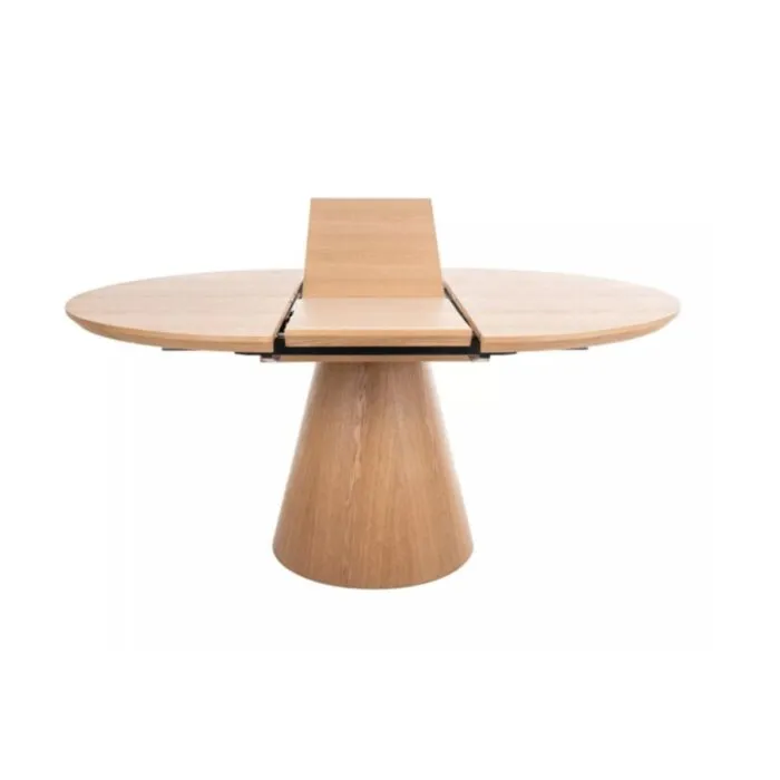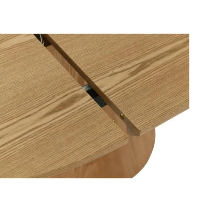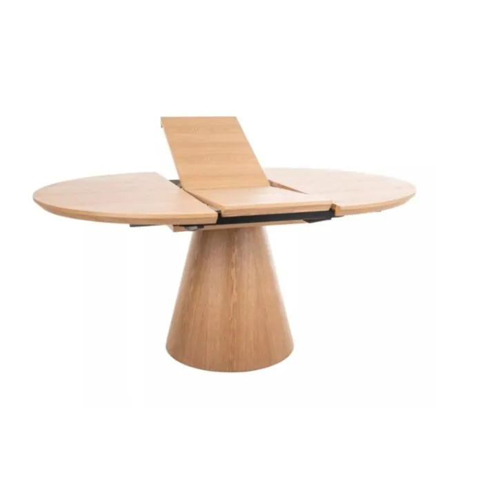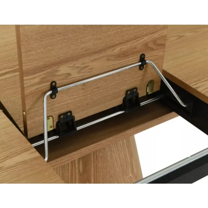 Elegantna in prefinjena raztegljiva jedilna miza ANGELIJA je odličen kos pohištva za vašo jedilnico. Mizna plošča je narejena iz kakovostnega MDF-ja in naravnega furnirja v barvi hrast. Ogrodje je narejeno iz MDF-ja v kombinaciji naravnega furnirja. Miza je raztegljiva, kar pomeni, da jo lahko rasztegnete ali zložite kadarkoli.