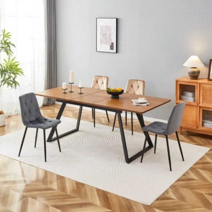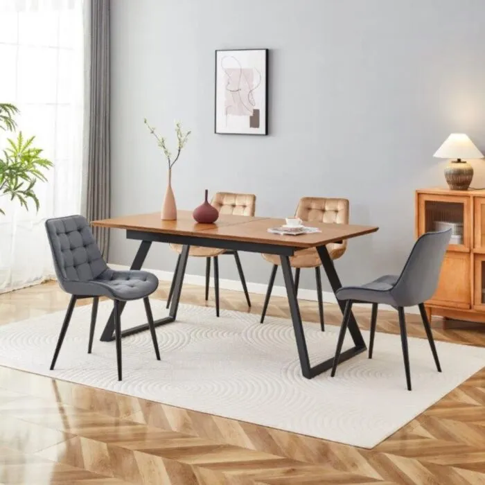 Raztegljiva jedilna miza ARLLO je modernega dizajna. Mizna plošča je izdelana iz MDF- ja in kakovostnega furnirja v elegantni barvi hrasta. Ogrodje je narejeno iz kovine v črni barvi. Miza se poda v vsak prostor ter je praktična za uporabo, saj je raztegljiva na 200 cm.